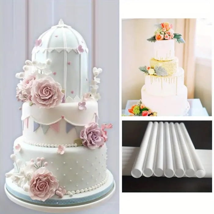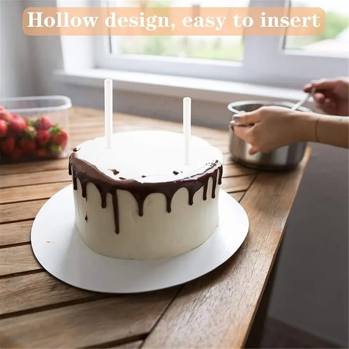 Każdy wspornik ma kształt rurki, co umożliwia jego łatwe dopasowanie do każdego rodzaju tortu. Aby go dostosować do odpowiedniej wysokości, wystarczy użyć ząbkowanego noża – precyzyjne przycinanie wspornika jest możliwe na dowolną długość, dzięki czemu każda warstwa tortu będzie idealnie podtrzymywana. Wsporniki mają długość 21 cm oraz średnicę 1 cm, co czyni je uniwersalnym rozwiązaniem dla tortów o różnych rozmiarach.