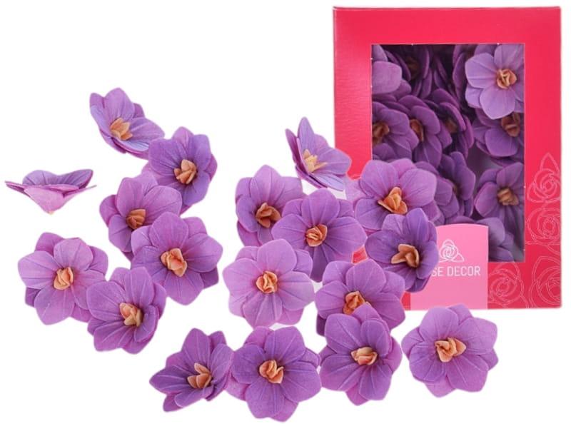 Kwiatki mają intensywny fioletowy kolor i średnicę około 4cm, co sprawia, że są idealne do dekoracji zarówno tortów, ciast jak i muffinek. Dzięki nim Twoje słodkie kreacje nabiorą niepowtarzalnego charakteru i zachwycą wszystkich gości.