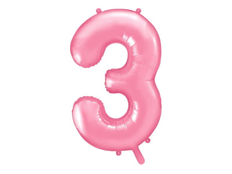 Balon foliowy metalizowany Cyfra "3" w kolorze różowym, rozmiar ok. 86 cm (34")