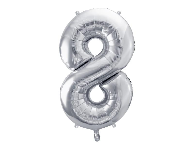 Balon foliowy metalizowany Cyfra "8" w kolorze srebrnym, rozmiar ok. 86 cm (34")