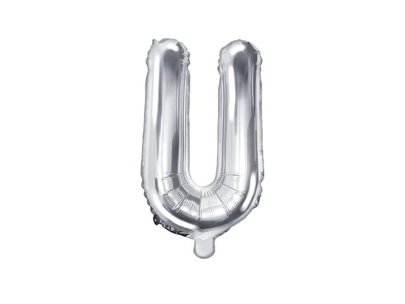Balon foliowy metalizowany Litera "U" w kolorze srebrnym, rozmiar ok. 35 cm (14").