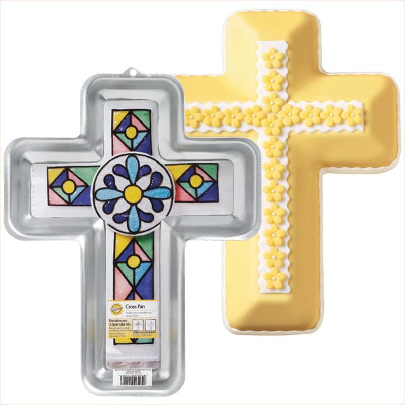 Aluminiowa forma do pieczenia ciasta w kształcie krzyża, idealna do tortów na różne okazje np. Pierwszą Komunię Świętą.