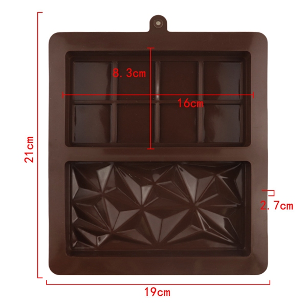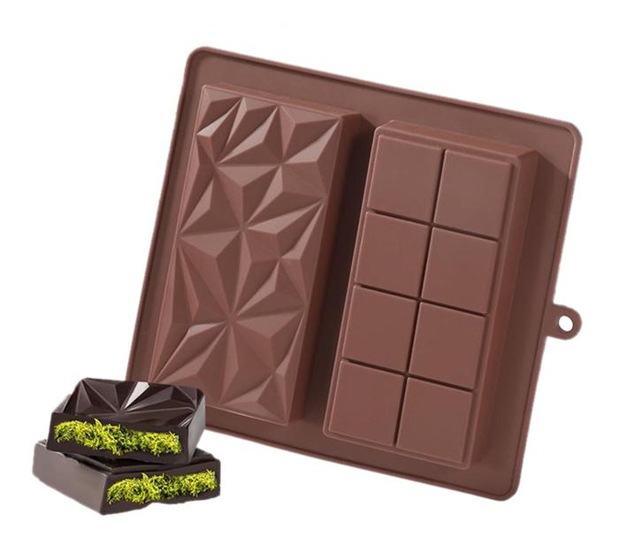 ⭐️ Stwórz wyjątkowe tabliczki czekolady we własnej kuchni dzięki eleganckiej, dwukomorowej formie silikonowej! Jedna część formy tworzy geometryczną, nowoczesną „czekoladę dubajską”, a druga klasyczną tabliczkę z podziałem na kostki. Idealna do czekolady, pralinek z nadzieniem, batoników czy kreatywnych deserów ✨