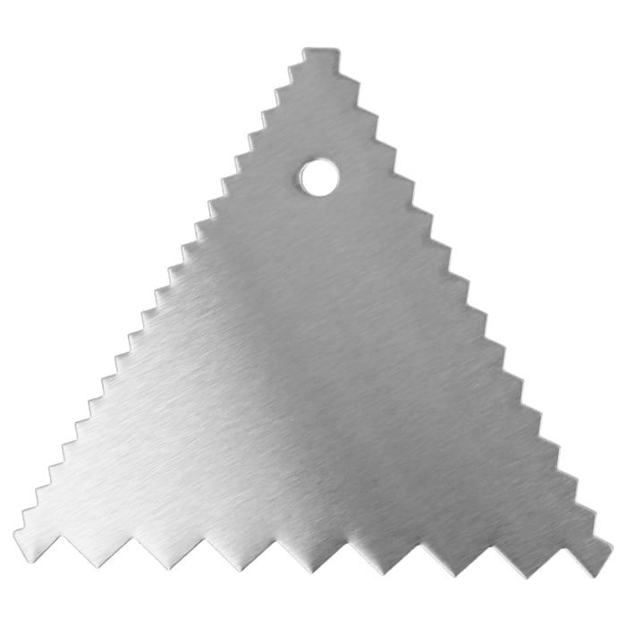 Wykonany z metalu skrobak z 3 różnymi wzorami, dzięki któremu łatwo i szybko ukształtujesz krem na torcie; skrobaki zapewniają regularne, geometryczne linie na bokach ciast.