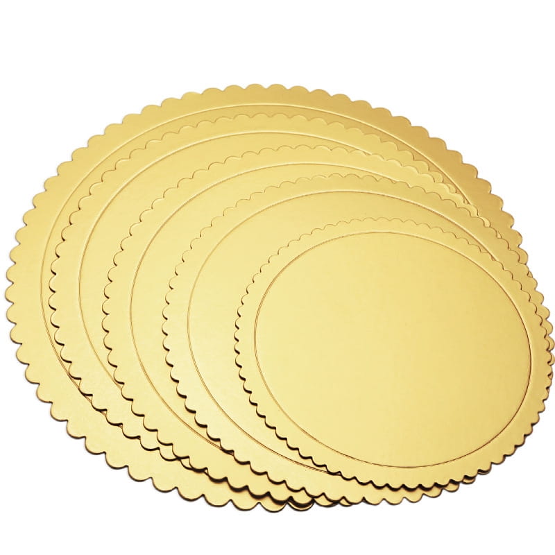 Okrągły podkład pod tort 32 cm karbowany | Złoty | 3 mm | do 10 kg