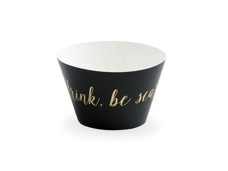 Papilotki na muffinki Trick or Treat w kolorze czarnym ze złotym napisem Eat, drink, be scary!,