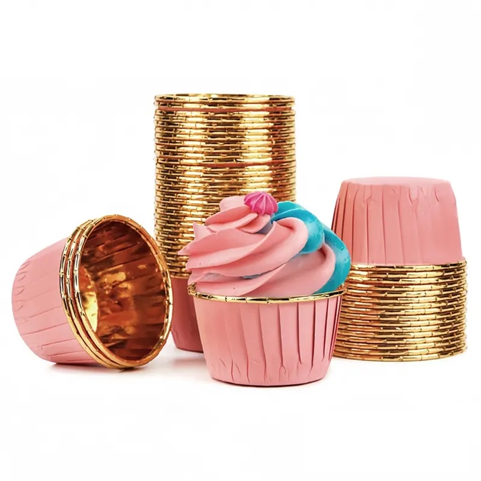 ✴️ Papilotki papierowe kubeczki różowo-złote 50×40 mm – 50 szt.
