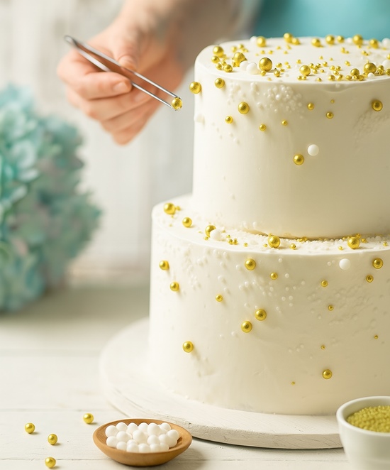 ✨ Luksusowe, jadalne perełki cukrowe w kolorze złotym – doskonałe do dekorowania tortów, deserów, ciasteczek i babeczek. Dodają blasku i elegancji każdej słodkiej kompozycji. ❤️