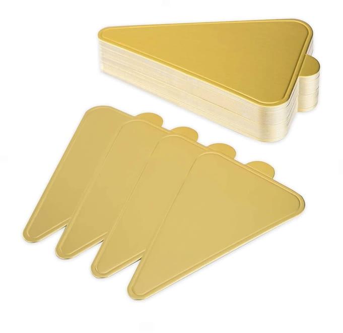 Trójkątne podkładki pod monoporcje wykonane z litej tektury o grubości około 0,8 mm (gramatura-600).
