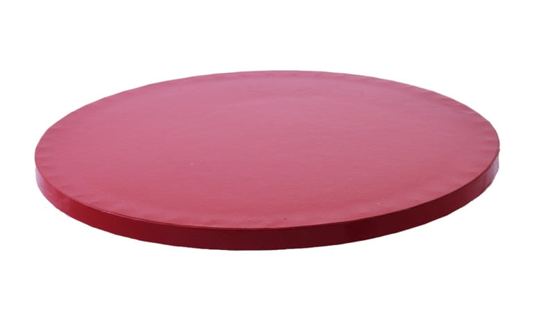 Okrągły podkład pod torty i ciasta o grubości 12mm, wzmocniony obustronnie litą tekturą co gwarantuje dużą sztywność i odporność na obciążenia, pokryty folią aluminiową w kolorze czerwonym, dopuszczoną do kontaktu z żywnością