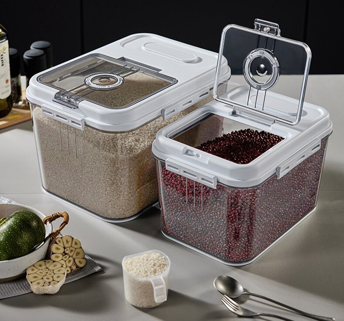⭐️ Duży pojemnik do przechowywania żywności to praktyczne rozwiązanie do organizacji kuchni i wygodnego przechowywania produktów sypkich, takich jak ryż, mąka, kasza, makaron, płatki czy karma. Przezroczyste ścianki pozwalają szybko sprawdzić zawartość, a szczelnie zamykana pokrywa pomaga utrzymać porządek i chronić przechowywane produkty przed wilgocią oraz zanieczyszczeniami. To funkcjonalny wybór do nowoczesnej kuchni, spiżarni lub schowka.