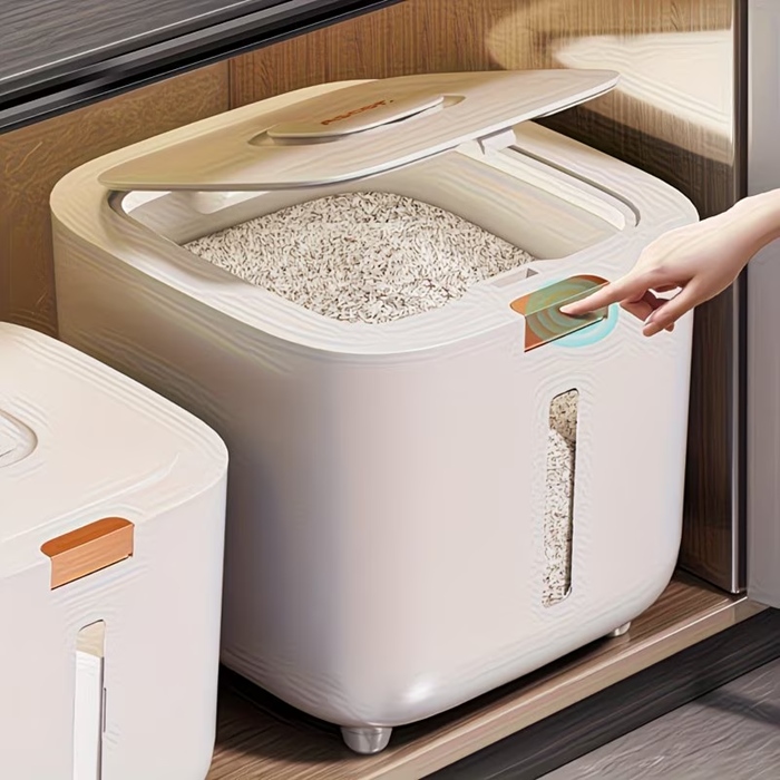 ✅ Pojemnik 10 kg z miarką i schowkiem w pokrywie to praktyczny sposób na uporządkowane i wygodne przechowywanie żywności oraz karmy. Sprawdzi się w każdym domu, pomagając zachować porządek, świeżość produktów i łatwy dostęp do codziennych zapasów.