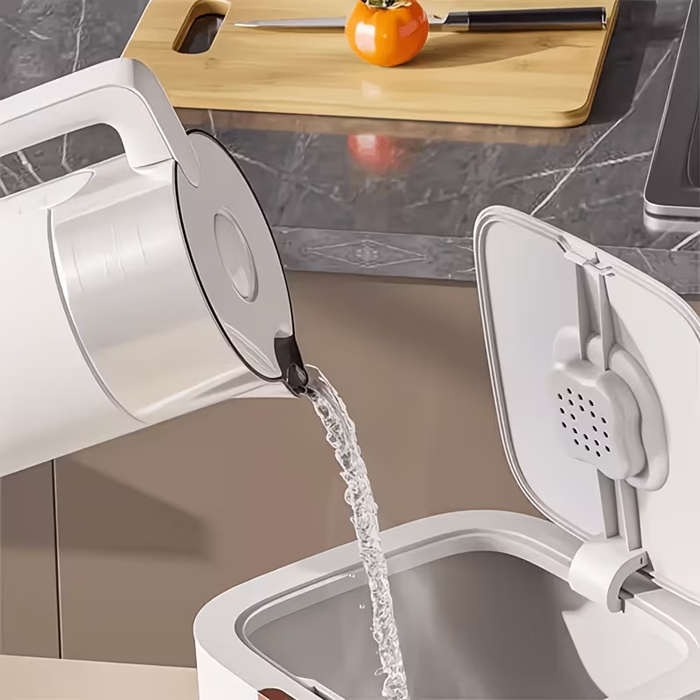 ✅ Pojemnik 15 kg z miarką i schowkiem w pokrywie to praktyczny sposób na uporządkowane i wygodne przechowywanie żywności oraz karmy. Sprawdzi się w każdym domu, pomagając zachować porządek, świeżość produktów i łatwy dostęp do codziennych zapasów.