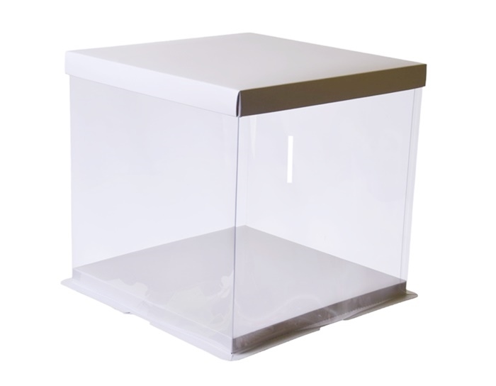 Pudełko na tort 17x17x12,5cm WYSOKIE BIAŁO TRANSPARENTNE