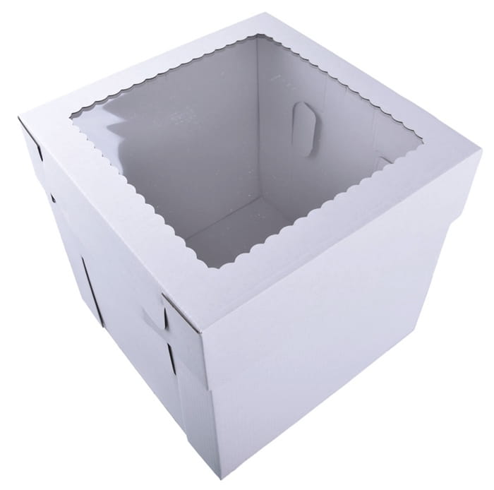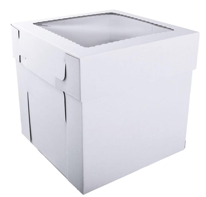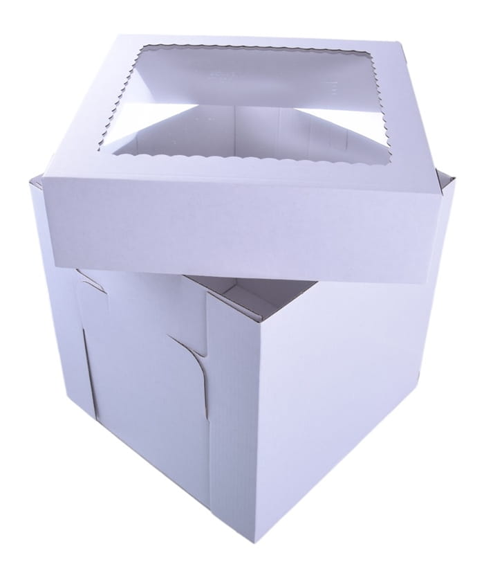 Pudełko na tort 20x20x20cm WYSOKIE białe z oknem MOCNE 3W