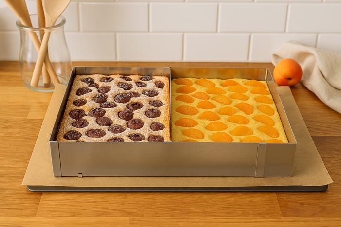 Specjalna przegroda umożliwia pieczenie dwóch różnych ciast jednocześnie – to idealne rozwiązanie, gdy chcesz zaoszczędzić czas i stworzyć kilka smaków naraz.