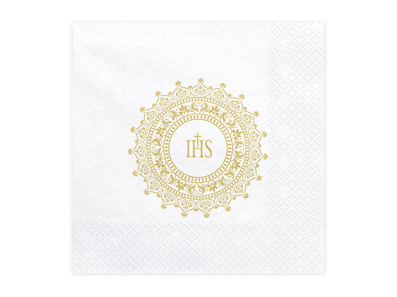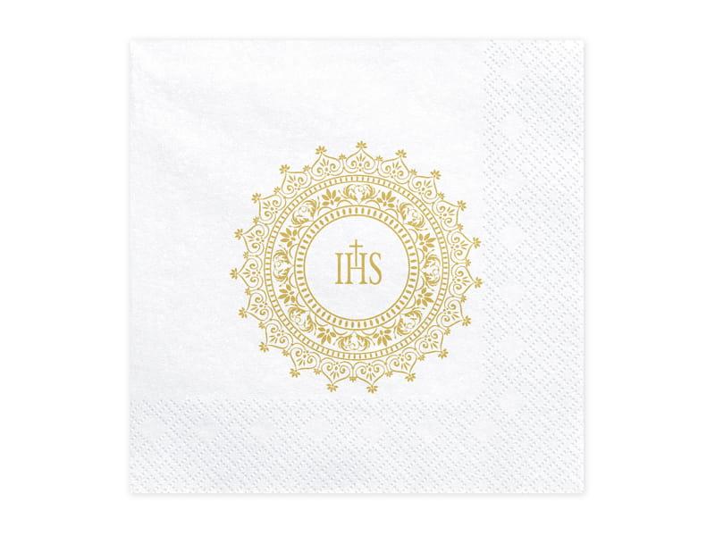 Serwetki papierowe w kolorze białym, ze złotym nadrukiem IHS