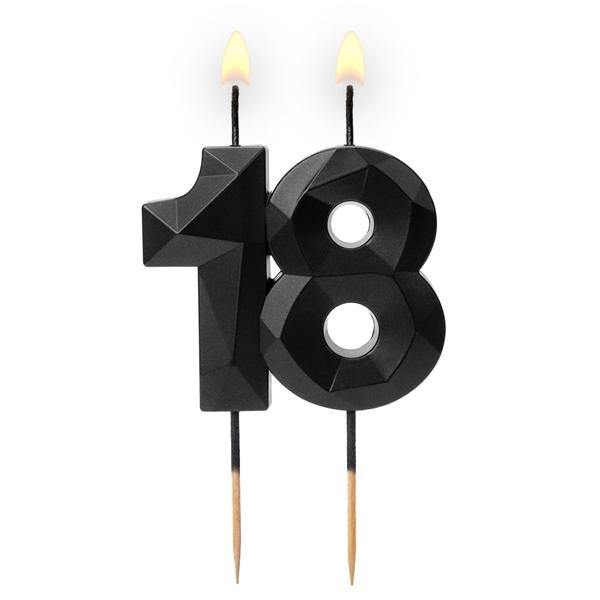 Świeczka urodzinowa liczba 18 czarna diamentowa cyfra na tort