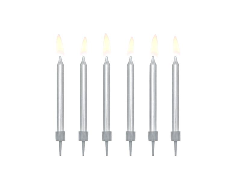 Świeczki Urodzinowe Gładkie Srebrne 6szt