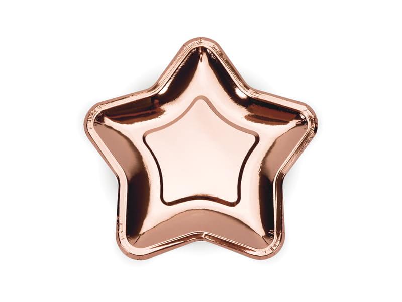 Talerzyki Gwiazdka wykonane z papieru metalizowanego w kolorze różowego złota,