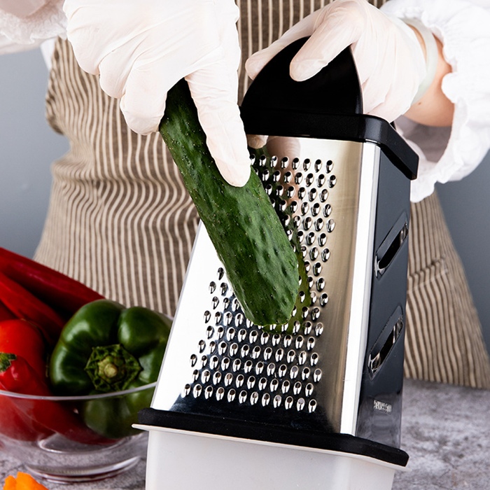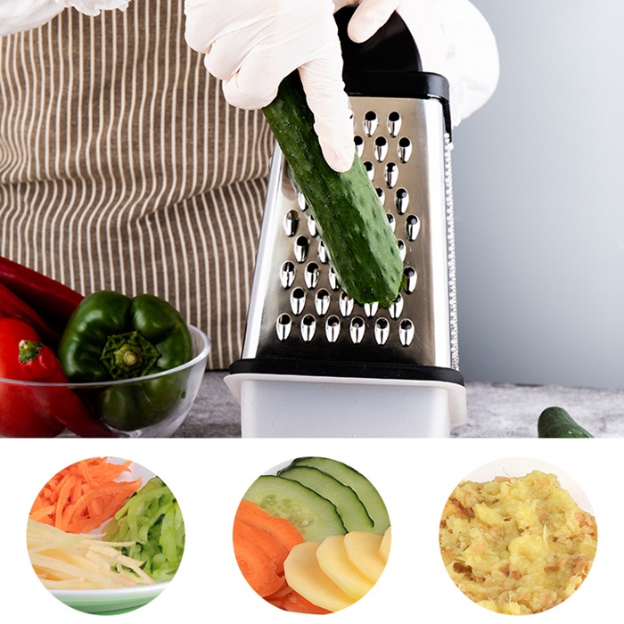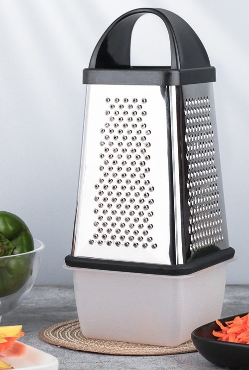 ✨ Funkcjonalna i wygodna tarka kuchenna z pojemnikiem to niezastąpione narzędzie w każdej kuchni! Dzięki czterem ostrzom o różnej grubości idealnie nadaje się do ścierania warzyw, owoców, sera, czekolady czy przypraw. ❤️ Dodatkowy pojemnik można zamontować bezpośrednio pod tarką, dzięki czemu starte produkty trafiają prosto do środka – koniec z rozsypanym jedzeniem na blacie!