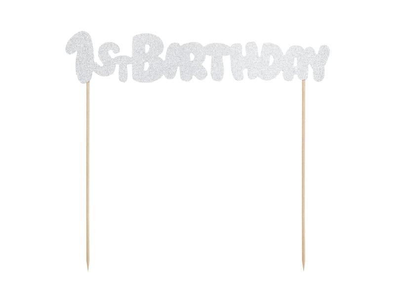 Topper na tort "1st Birthday" to idealna ozdoba na tort z okazji pierwszych urodzin dziecka;