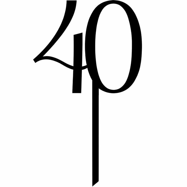 Topper na tort liczba 40 akrylowy czarny na urodziny