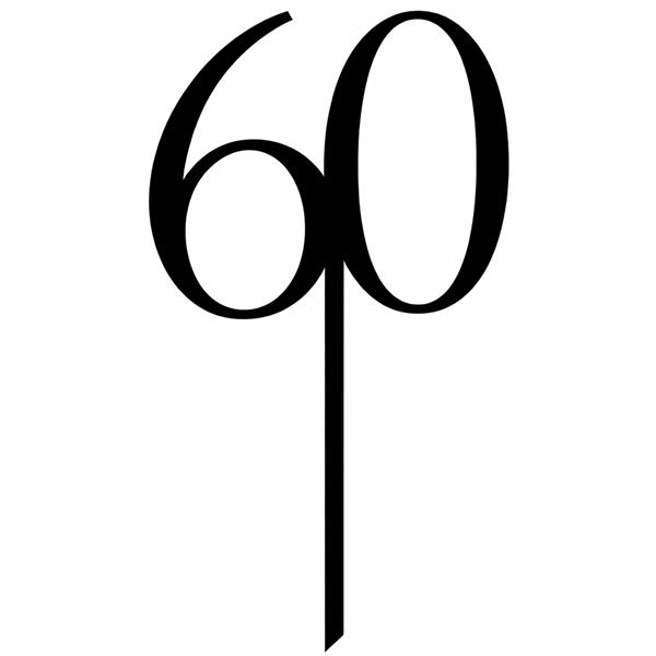 Topper na tort liczba 60 akrylowy czarny na urodziny