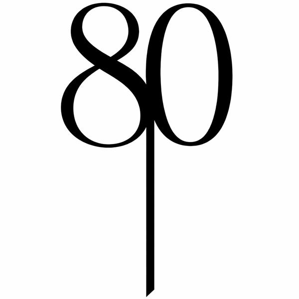 Topper na tort liczba 80 akrylowy czarny na urodziny