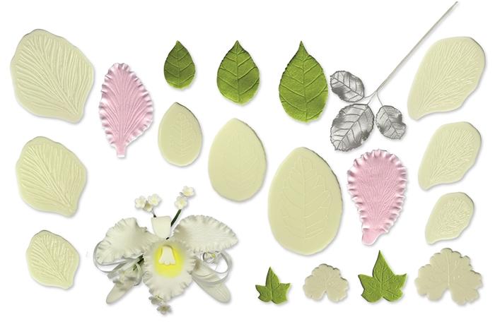Profesjonalny zestaw form do tworzenia realistycznych liści i płatków z masy cukrowej, lukru plastycznego, marcepanu i innych mas dekoracyjnych. Dzięki precyzyjnie odwzorowanym unerwieniom uzyskasz wyjątkowo naturalny wygląd kwiatowych dekoracji.