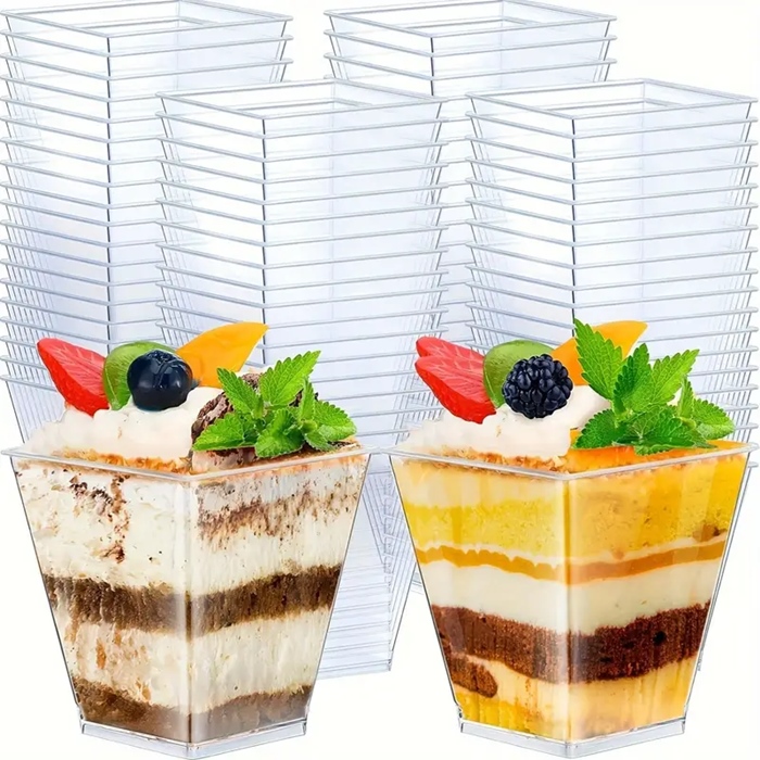 Pucharki Kwadratowe do deserów 60ml 50szt na przekąski desery pojemniki