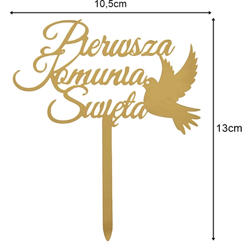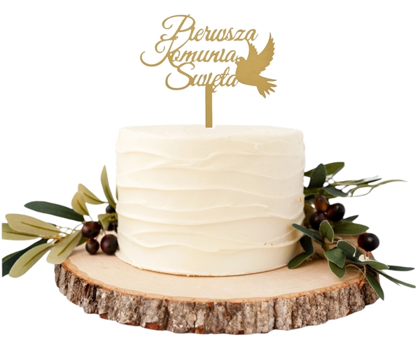 Topper na tort Pierwsza Komunia Święta akrylowy złoty