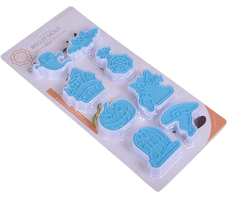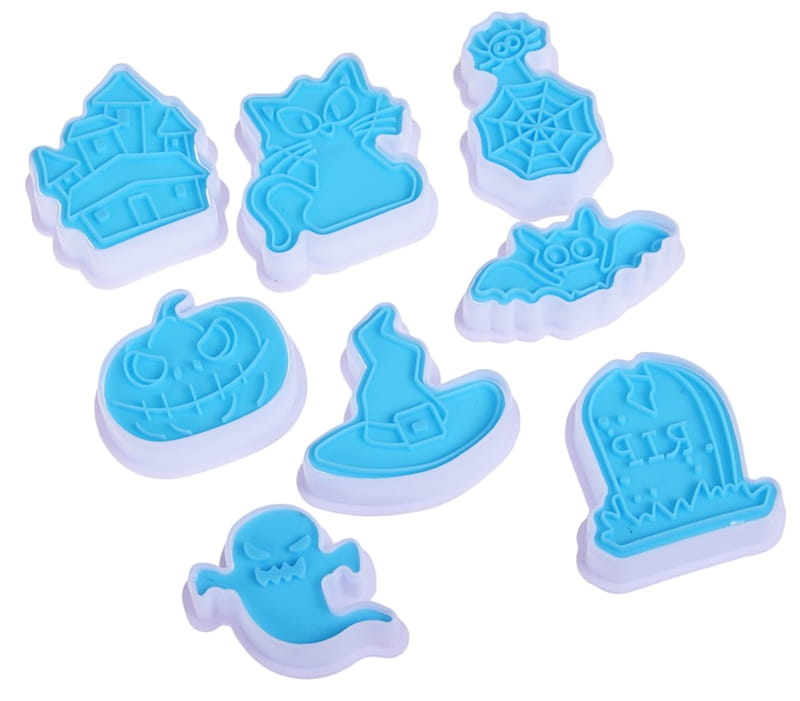 Wykrawacze ze Stemplem Halloween foremki do ciastek 8szt to idealny dodatek do Twojej kreatywnej kuchni, zwłaszcza w okresie Halloween. To zestaw 8 sztuk foremek o tematyce halloweenowej, które pozwolą Ci wyczarować niepowtarzalne ciastka i herbatniki.