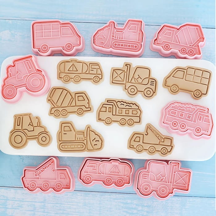 Wykrawacze ze Stemplem POJAZDY MSZYNY BUDOWLANE foremki 8szt to niezastąpione narzędzia dla pasjonatów cukiernictwa, oferujące pełną precyzję i wyrafinowanie w tworzeniu wyjątkowych dekoracji. Zestaw składa się z 8 wykrawaczy z stemplem, przedstawiających pojazdy i maszyny budowlane, o rozmiarach około 5-6 cm każdy. Idealnie sprawdzą się przy wypieku ciastek, oraz przy dekorowaniu z masy cukrowej.